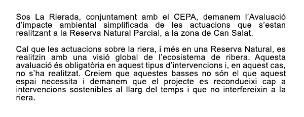 Uncategorized Demanem l’aturada de les actuacions a la riera de Vallvidrera 15/05/2022 admin 0 Comments demanda-aturada-basses-riera_CPNCBaixa demandaAIASBASSES_ACABaixa