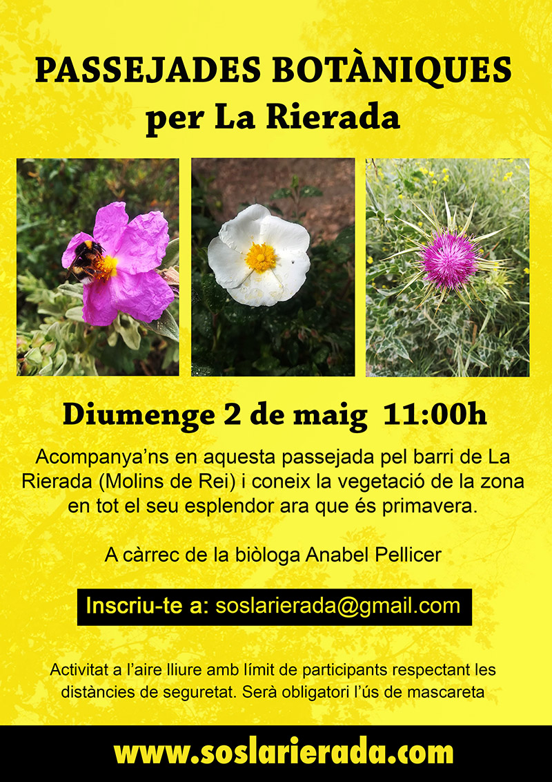 El proper diumenge 2 de maig des de la plataforma SOS La Rierada et convidem a conèixer la vegetació del barri de La Rierada de la mà de la biòloga Anabel Pellicer.